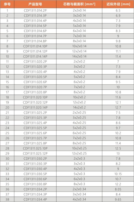 使用溫度范圍 : 非拖鏈內運動:-5 ℃ 至 105 ℃
