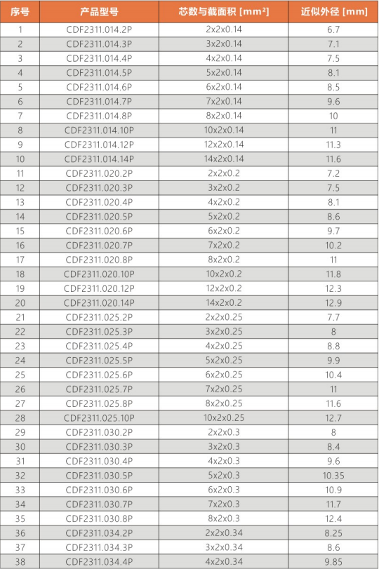 彎曲半徑 : 非拖鏈內(nèi)運(yùn)動:5.0X電纜外徑