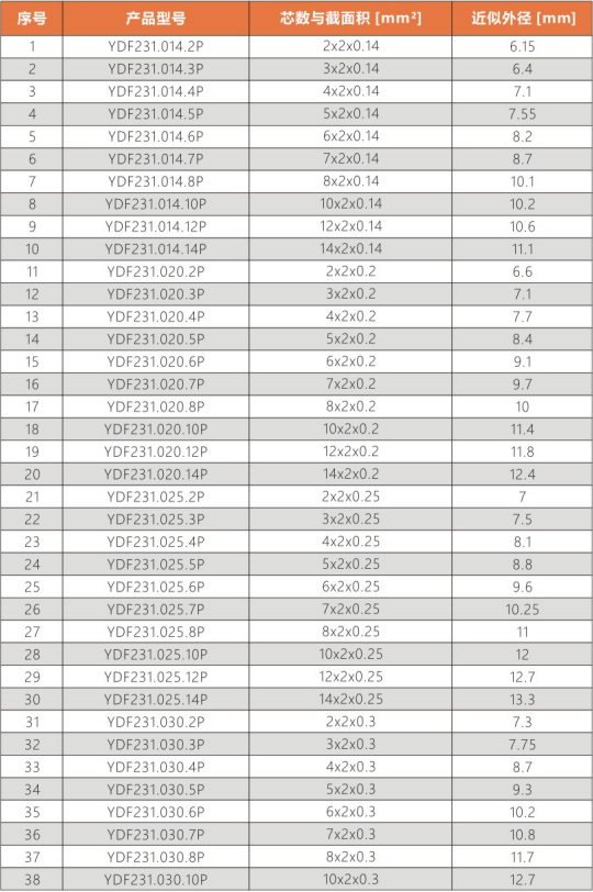 彎曲半徑                :     非拖鏈內(nèi)運(yùn)動(dòng):10.0X電纜外徑