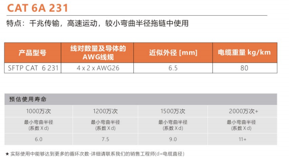 彎曲半徑 : 非拖鏈內(nèi)運(yùn)動(dòng):5.0X電纜外徑